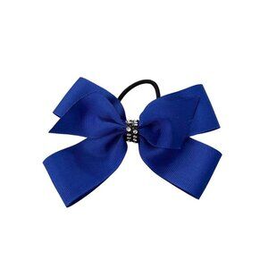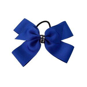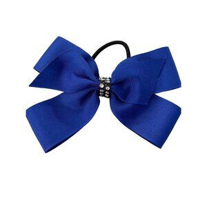 Girls Oversize Hair Bow 5" Elastic Ponytail Blue Bejeweled