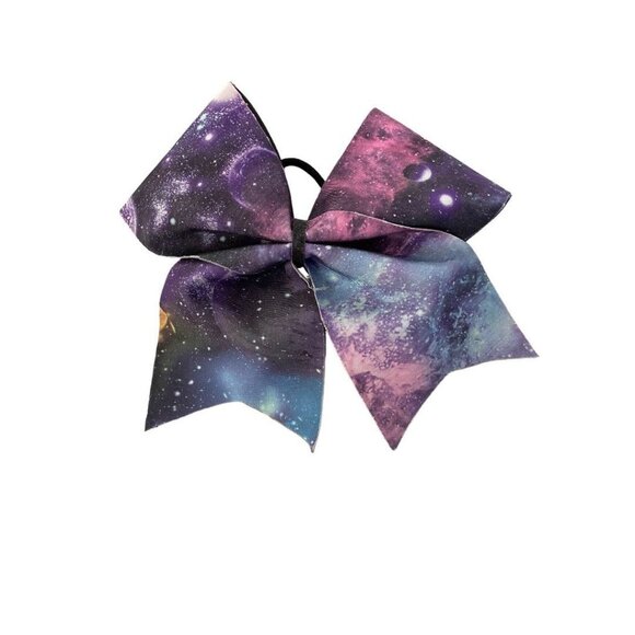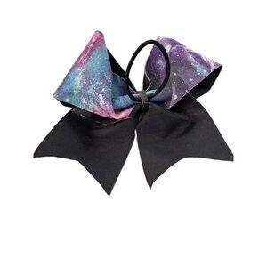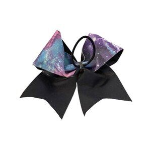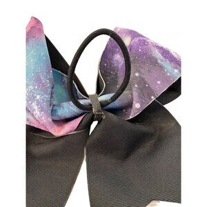 Girls Oversize Hair Bow 6" Elastic Ponytail Galaxy Print Blue Pink Purple