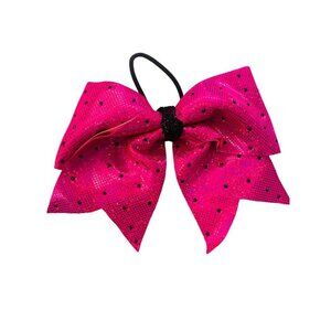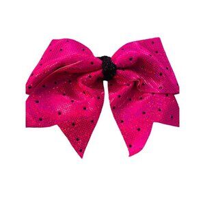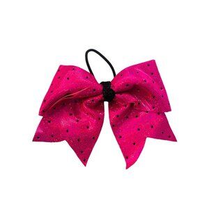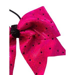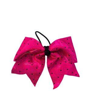 Girls Oversize Hair Bow 6.5" Elastic Ponytail Hot Pink Black Dots Gilttery Shiny