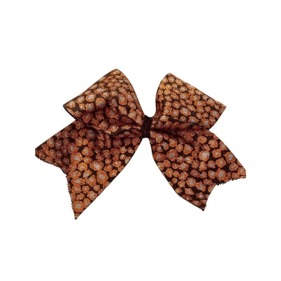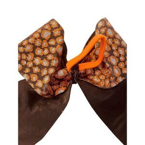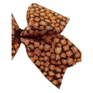 Girls Oversize Hair Bow 7.5" Elastic Ponytail Black Orange Silver Animal Print Glittery