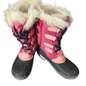 Girls Ozark Trail Hot Pink Suede Faux Fur Winter Snow Boots Size US 3 EU 35 Lace Up with 3M Thinsulate soft fleece lining, faux fur trim, and zippers on the inside of each boot. **These are a girls size, not for toddlers.** Rated to -26°