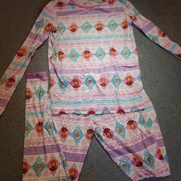 Girls Frozen PJs, can also be worn as Pjs. Sleeves have cut outs for thumbs.