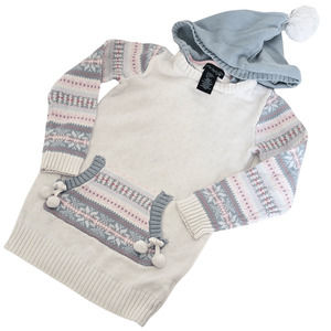 Pre-owned Girls Pink Blue Warm Tunic Hooded Sweater Sz 5/6. Good condition.