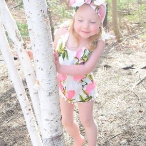 Cute Lemon Romper with Pom Pom details and matching head wrap. Closing out my boutique so trying to sell the last of my inventory <3