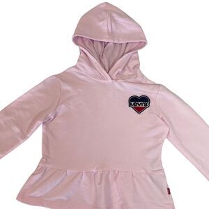 Girl's Pink Levi's Hoodie Levi's Logo Patch Ruffle Hem Size 4XS 3-4Yrs