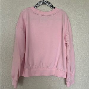 Girls cozy pink sweatshirt featuring a floral heart design in red. Perfect for casual wear.