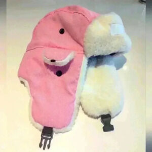 Girls Pink Winter Trapper Hat with snap chin closer- size 7-10 BNWOT