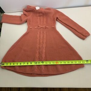 Girls Pink, cottagecore cable knit sweater dress, bow accent, boho balletcore