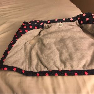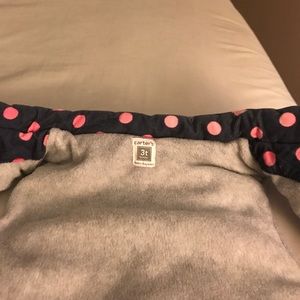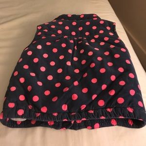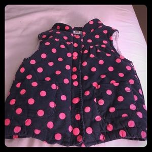Girls Pink/Navy Corduroy Vest, Carter's, 3T, EUC. Some fading of polka dots on inside neck (shown in pics). Fleece lined w/ snap front. Two front pockets & some elastic around waist. Adorable & fuzzy! Open to reasonable offers. Also, save $ with my bundle discount!