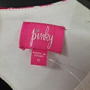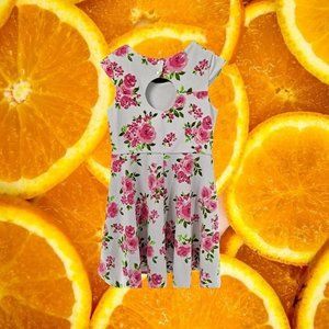 Girls Pinky White dress with Pink Flowers. There is a cute little circle opening in the back. The dress does have belt lops but it does not come with a belt.