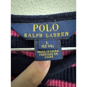 Girls Polo Ralph Lauren Waffle Dress Pink Navy Large 12-14