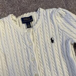 Girl's Polo Ralph Lauren White Cable Knit Button Up Cardigan Light Sweater Sz 6