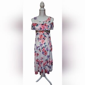 Girls Poppies & Roses Cute Maxi Dress Sz Medium White Floral Off Shoulder