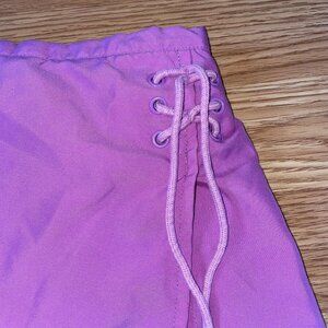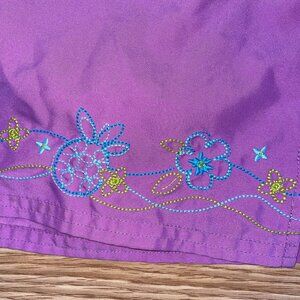 Girls Purple Embroidered Skort With Floral Design & Lace-Up Detail