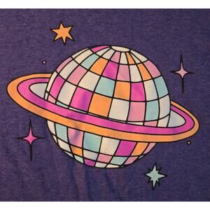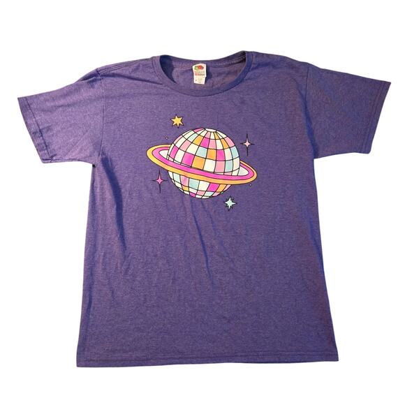 Girls Purple Fruit of the Loom Disco Saturn T shirt Size Medium