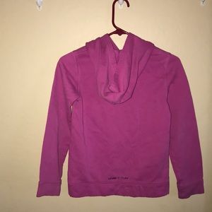 Girls used Under Armour sweatshirt. In good condition, no holes or tears. Purpleish pink color.