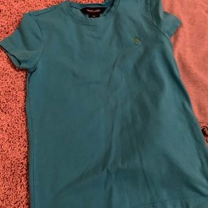 Girls 6/6X Ralph Lauren 2 Dress & shirt Bundle. One perfect condition long sleeve grey size 6 dress with purple polo horse and adorable skirt ruffles. One good used condition short sleeve pink size 6X dress with green polo horse. Small hole near bottom hem (see pic). One great condition bright teal stretch fabric 6X T-shirt with green polo horse.