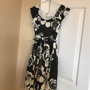 Darling girls black and white Rare Edition brand floral dress. Worn two times. 97% cotton, 3% spandex. Has a crinoline slip. Cap sleeves and side zipper.
