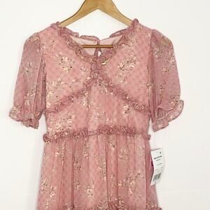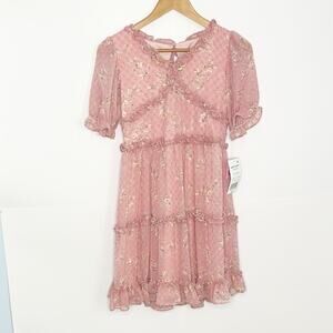 Girls Rare Editions V-Neck Floral Chiffon Dress Size 16