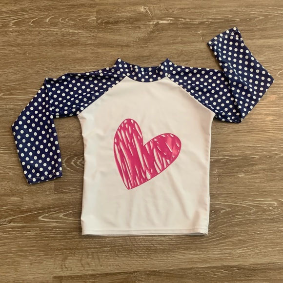 Girls long sleeve rash guard. This is marked as size large but fits more like a small. Does have some signs of wear.