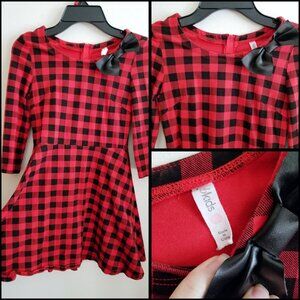 Girls Red Black Plaid Dress ✦ Fabkids XL ✦ Vegan Leather Bow ✦ Holiday Partywear