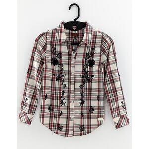 Girls Red Plaid Shirt 7 For All Mankind Adjustable Sleeve Length