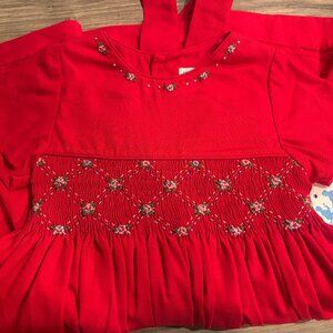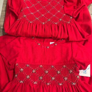 Girls Red Smocked Dress Hand- Embroidery Luli & Me Short Sleeve