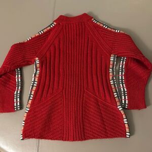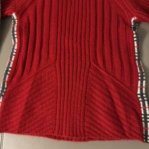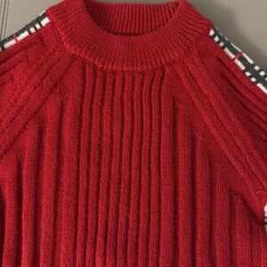 Girls Red Wool Ribbed Long Sleeve Sweater with Check Detail. Size 8.