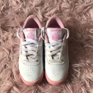Girls pink and white Reebok Shoes. Soft toe. Super comfy inside. Size 13c. Still in good condition. Barely worn.