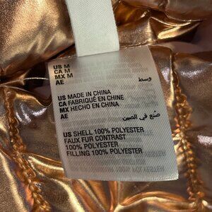 Cozy and stylish girls reversible vest in size M. One side features soft burgundy faux fur for warmth and comfort, while the reverse side has a shiny metallic gold polyester finish for a fun, eye-catching look. Lightweight yet warm—perfect for layering in cooler weather. In great pre-owned condition with no major flaws.