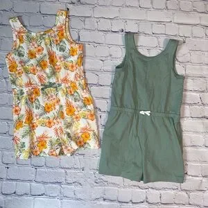 Vibrant Like New rompers. Includes olive and floral designs. Soft and comfortable fabric.