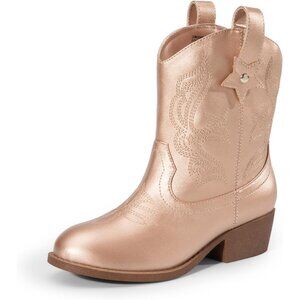 ⚡Girls Rose Gold Cowgirl Boot With Low Heel Western Embroidered Fashion Mid Calf