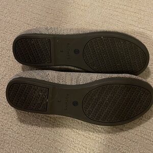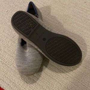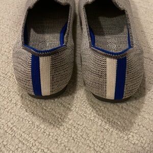 Size 3 - barely worn girl’s Rothy’s - gray with blue and white stripe on heel.