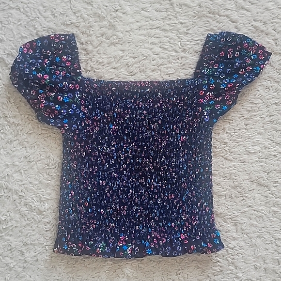 Black with flowers slight crop top. Size 7. Never worn. Japana Kids.