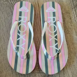 Check out these fun striped flip flops! Gently used. Great colors, easy and comfy wear!