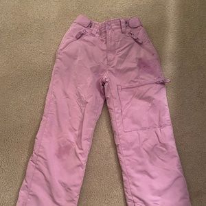 This adorable pink snowsuit will keep your child warm on a cold day. This snowsuit was worn for one season. It is in good condition.