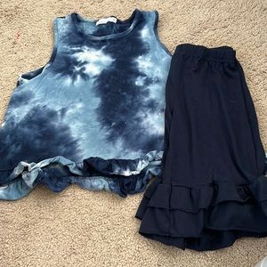 Girls size 14 blue tie dyed ruffle shirt and matching blue ruffled shorts