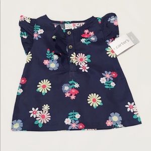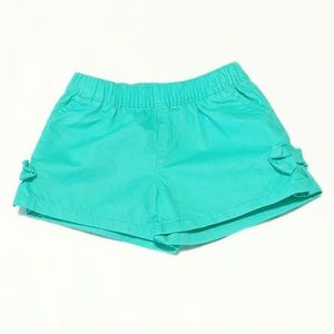 Blue floral shirt & Turquoise shorts with ruffled bow on each side.