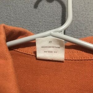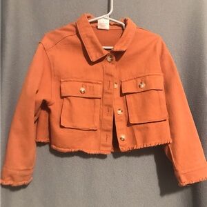 Wonder nation girls light jean jacket in a vibrant rust color. Perfect for keeping your child warm. Trim with ridges on the edges to make the jacket stand out. Preloved without tears or holes. Girls size 4T.