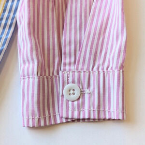 SHEIN Young girls size 5/6Y (120) Multicolor, (Pink/Blue/Yellow) Striped Color Block Elegant Collared, Long Sleeve shirt for back to school.