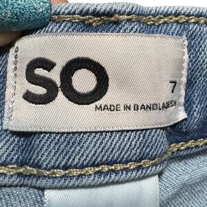 Girls' denim shorts from SO in size 7. Light wash with a soft stretch blend, cuffed hems, and subtle distressing for a cute, casual look. Perfect for summer, school, or everyday wear!