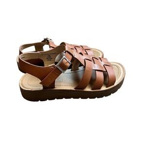 Girls Sandals, Size 1, Soda Brand, Brown, Buckle, Weave, Open Toe, Summer
