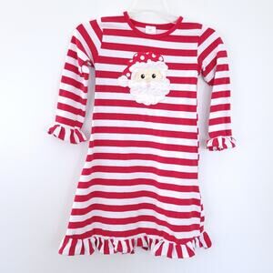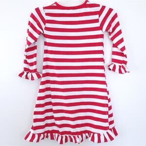 Girls Santa Dress Red White Stripe, Ruffle Trim Sleeves, Fits Like Medium/8 (Size listed is 3X kids- China). Excellent preowned condition. 100% cotton. Christmas dress. Holiday dress. Long Sleeve.