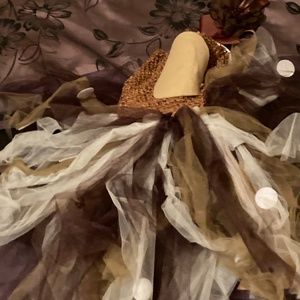 Stunning reindeer dress , perfect for many different occasions , costume or XMas!! Worn once for picture, and Christmas party . So many layers of cream and brown mesh material make up this incredible dress for your little one , hair bow accessorie included!