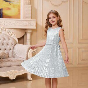 Girls Sequin Dress Sleeveless Prom Party Formal Graduations Fancy Tween Girls Dr