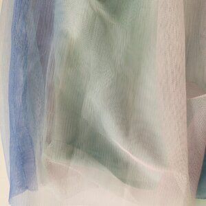 Girls' Sequin Tulle Sleeveless Dress - Cat & Jack™ Mint MED PLAY. BEAUTIFUL tulle and sequin dress in the color mint. The top layer of the tulle skirt is multi pastel colors. SO pretty for a party or princess day. Play for multiple pulls on outer tulle (not all are photographed up close, there are a few) , a pull on the inside (shown in last image) that does not seem to be noticeable from the outside as well as multiple small pulls and light staining on back of dress.