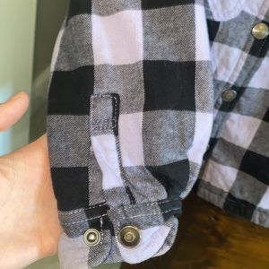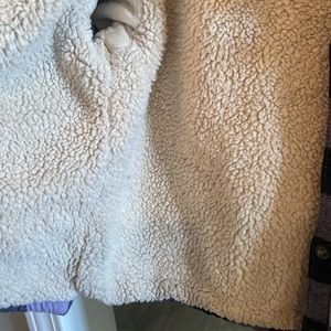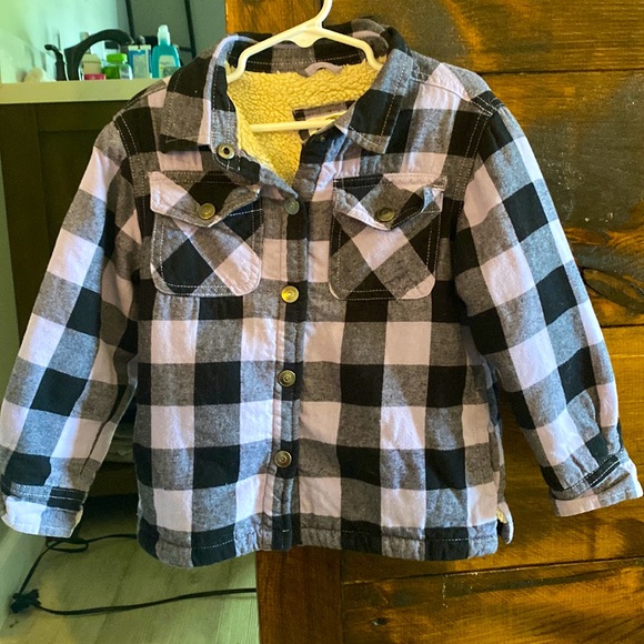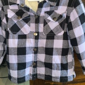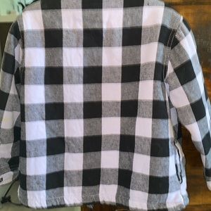 Pictures don’t do this jacket justice! Dark purple and black plaid checkered design. Front pockets. Buttons up the front. Fuzzy and warm on the inside.