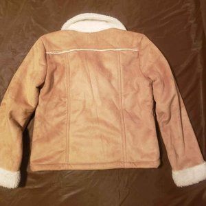 Girls Sherpa Trim, Tan Faux Suede jacket, Gap, Shearling Trim