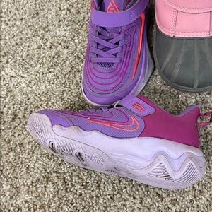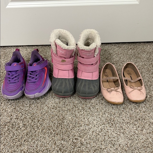 Set of kids shoes including pink and grey snow boots, purple Nike sneakers, and pink ballet flats. All size 11. Let me know if you are only interested in one pair instead of all 3.
