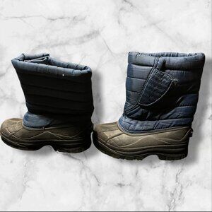 These snow boots feature a durable design with a quilted upper and insulated lining, providing warmth and protection during winter activities. The sturdy rubber sole ensures reliable traction on slippery surfaces.